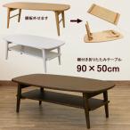 折りたたみテーブル 90cm幅 棚付き木製 おしゃれ センターテーブル 天然木使用 北欧風 楕円 長方形 奥行スッキリ コンパクト
