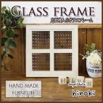 ガラスフレーム チェッカーガラス 片面桟入り 桟入りガラス窓 25×25cm アンティークホワイト 木製 ひのき 北欧 受注製作