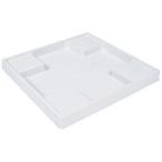 洗面所まだ散らかってますが...向かって右側一面だけ壁紙で、あとは漆喰、床はクッションフロア、窓枠はペイントしました。