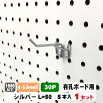 4~5.5mm厚有孔ボード用フック 30P用 L=50タイプ(5本入)1セット パンチングボード用フック パーツ ペグフック 壁取付セット 取付部材 金具 ディスプレイ