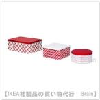 IKEA/イケア VINTERFEST 缶 ふた付き 3個セット ホワイト/レッド