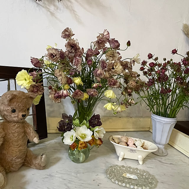 昨日は暑さでくったりしてしまったラナンキュラスラックスのサティロス・あずき・アイオリアを全てカット。クリスマスローズもカットしました。ちょっとでも咲かせようと大丈夫そうなアイオリアをバケツに入れてキッチンへ。花瓶に入れてリビングに飾りました。私のアイオリアはキメラ咲きなので黄色の花が混じりますが今年は黄色の花が多いです!いつも失敗しちゃいますがクリスマスローズのドライフラワーにしたくて洗濯ハンガーでぶらさげましたよ(๑˃̵ᴗ˂̵)