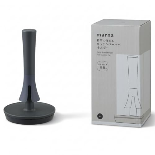 マーナ (marna) キッチンペーパーホルダー M (片手で引き出してサッと切れる) コンパクト キッチンタオルホルダー (吸盤でしっかり固定) ブラック K815BK