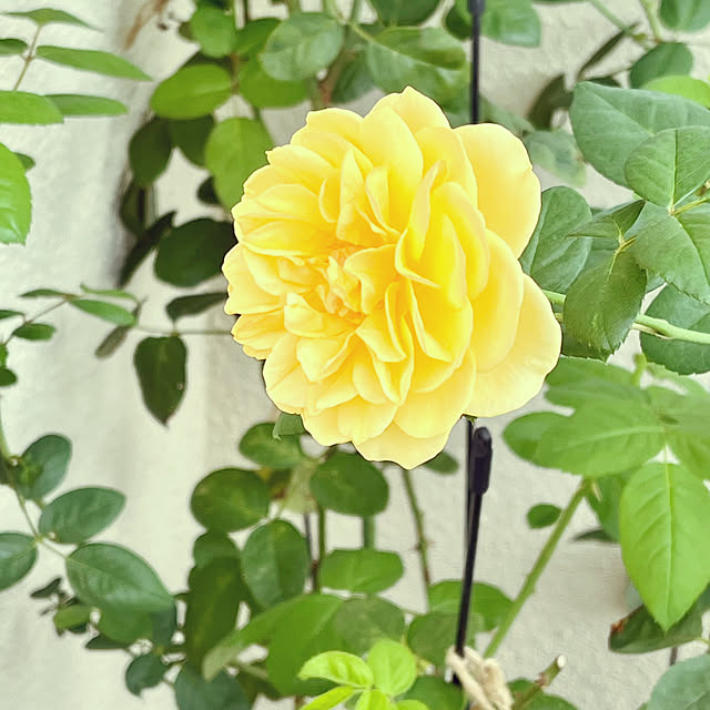 グラハム・トーマスが咲きました🎶😍咲き始めの鮮やかな黄色から徐々に淡いレモン色に色が変化します🥰🌼