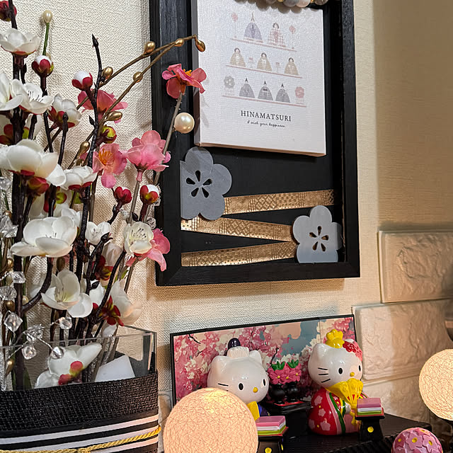 ご無沙汰な投稿今年もキティちゃんのお雛様🎎出しましたもちろん、雨水の時に100均で小物を買いたいして今年はやっと完成系になりました
