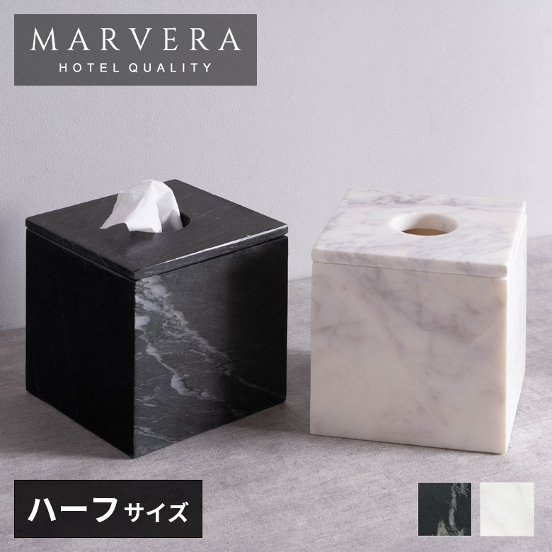 \今なら最大500円クーポン発行中!/天然大理石のティッシュ&トイレットペーパーケースhttps://item.rakuten.co.jp/zakka-elements/34662/¥3,980豊富なラインナップが魅力の大理石シリーズ、MARVERA(マーヴェラ)の正方形ティッシュケース。世界有数の大理石産地として知られるインドの天然大理石を贅沢に使用し、熟練職人がひとつひとつ丁寧に手作業で仕上げることで、素材本来の重厚感や温もりそして自然が生み出す唯一無二の美しい表情を引き立てています。内寸は12×12×13cmで、ハーフサイズのソフトパックティッシュがぴったり収まります。一般的なティッシュを二つにカットしてお使いいただくのもおすすめです。重厚感と高級感があり、ホテルライクでモダンなお部屋に格上げしてくれるインテリアアイテム。カラーはブラック・ホワイトの2色展開で用途やインテリアに合わせてお選びいただけます。※商品価格は市場の状況や在庫数などにより変動致します