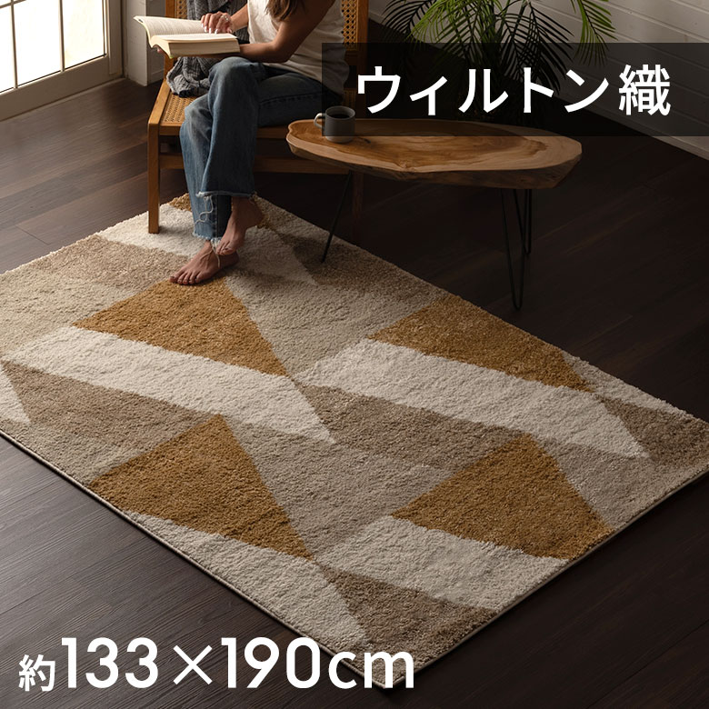 \リビングから寝室まで使える/おしゃれなジオメトリックデザインの高密度ウィルトン織りラグカーペットhttps://item.rakuten.co.jp/zakka-elements/eg84379¥11,400シャープな幾何学柄が空間のアクセントになるデザインラグ。アイボリーをベースに、ライトベージュ・サンド・キャメルなどのベージュ系カラーで奥行きとリズム感を作ったデザイン。合わせやすい色合いで、北欧・モダン・ナチュラルなど幅広いインテリアに自然になじみます。パイル長は約20mm。シャギーラグらしいふんわり感を保ちつつ長すぎない毛足でゴミが入りにくく日常のお手入れもしやすい設計です。太めのパイルにフリーズ加工(ツイスト)を施すことで見た目以上にボリューム感と弾力を感じられる一枚に仕上げました。パイル素材には、軽くて丈夫なポリプロピレンを100%使用。水分を吸収しにくく、汚れにも強いため、毎日の掃除も簡単。床暖房・ホットカーペット対応でオールシーズン快適にお使いいただけます。※商品価格は市場の状況や在庫数などにより変動致します
