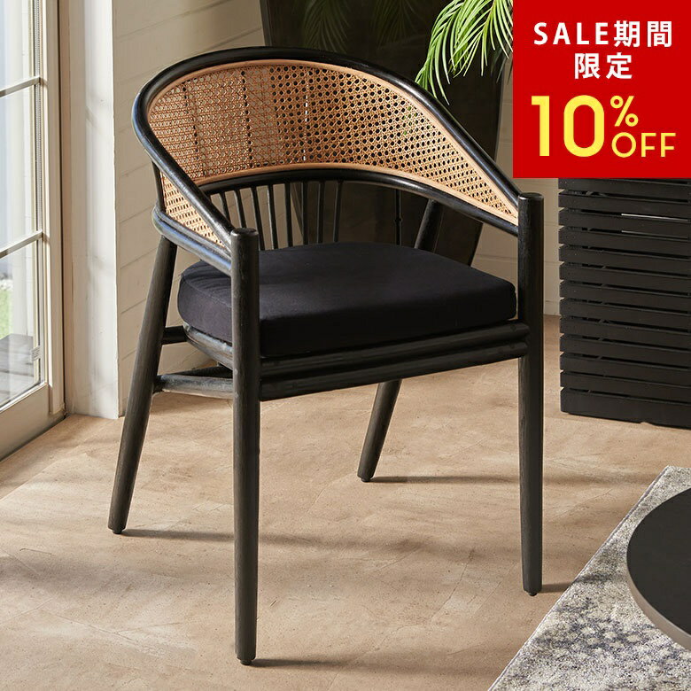 【SALE期間限定10%OFF】 ラタンチェア ダイニング チェア ナチュラル ダイニングチェア ラタン 籐家具 肘付き いす ラタン 椅子 籐 おしゃれ ラタンチェアー モダン W55×D54×H77 クッション付 チェアー 北欧 インテリア 西海岸 西海岸インテリア サーフスタイル[14160]