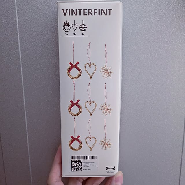 IKEAのクリスマスオーナメント麦わらで出来ていて可愛いですつなげて飾ってみました