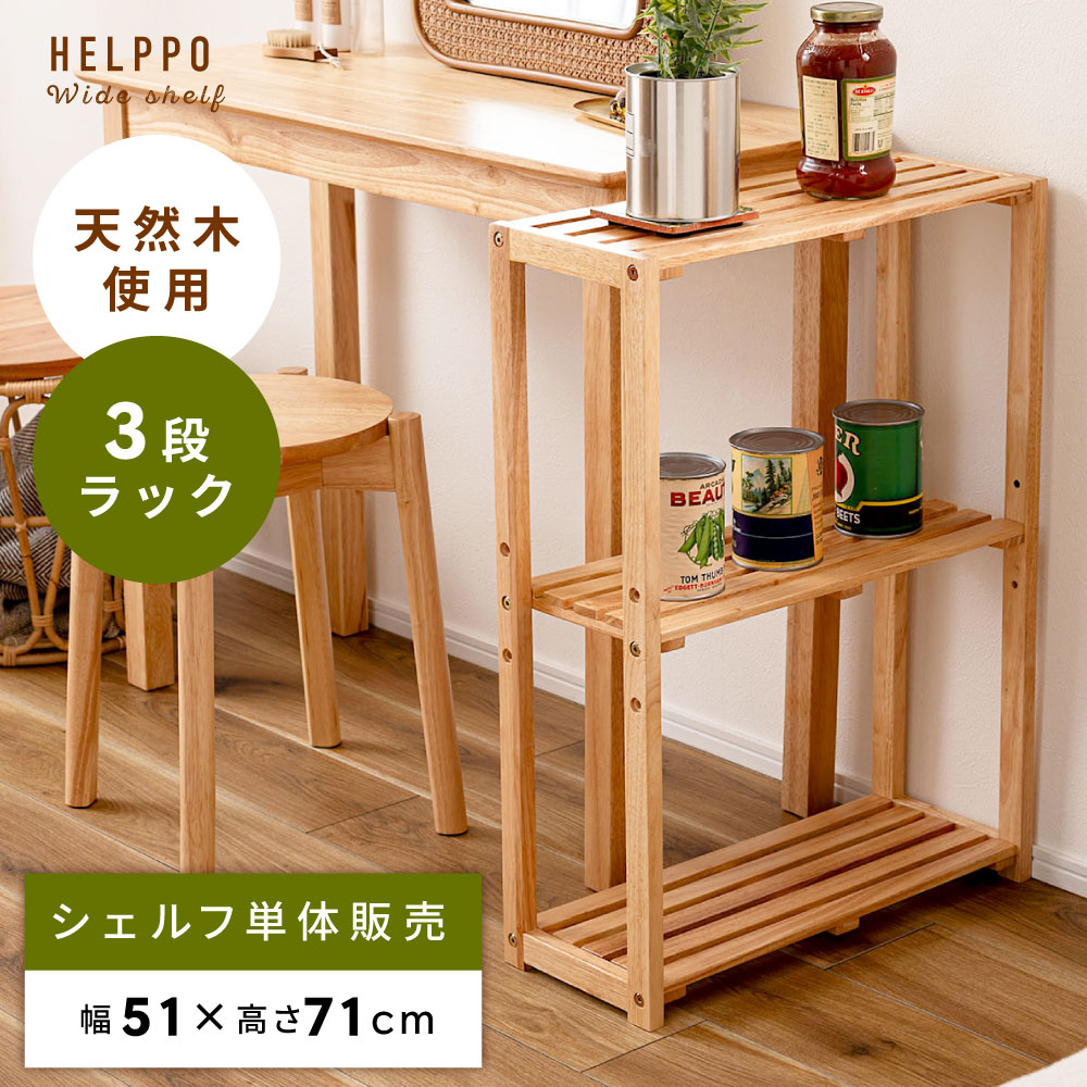 オープンラック 3段 シェルフ 棚 収納 ワイド 木製 天然木 ウッド 薄型 低め スリム 幅 51cm 高さ 71cm 奥行 21cm 可愛い ナチュラル リビング ディスプレイ 韓国インテリア おしゃれ 北欧 推し活