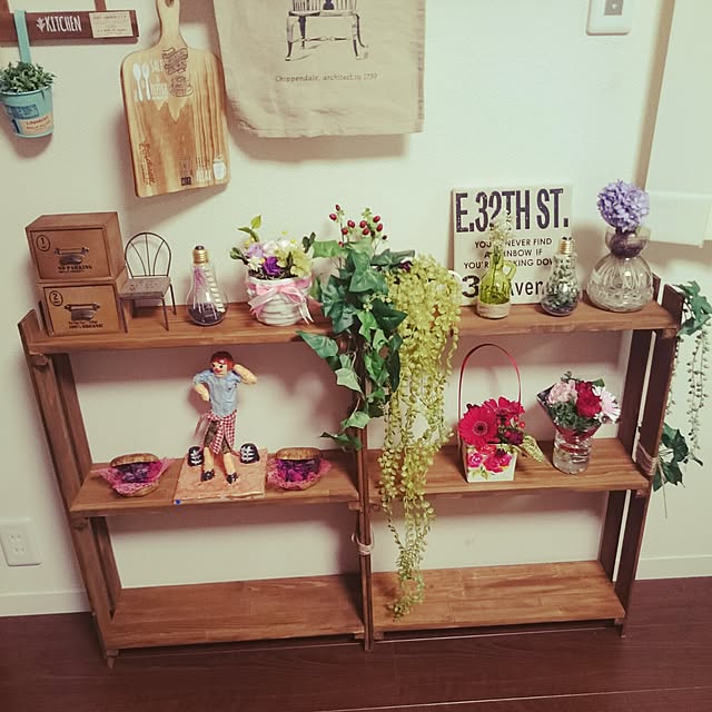 キッチンカウンターの上に飾り棚をDIYしてます!