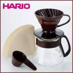【HARIO(ハリオ)】セラミック(陶器)ドリッパー&コーヒーサーバーセット ショコラブラウン 計量スプーン&ペーパーフィルター付き◆コーヒー/コー