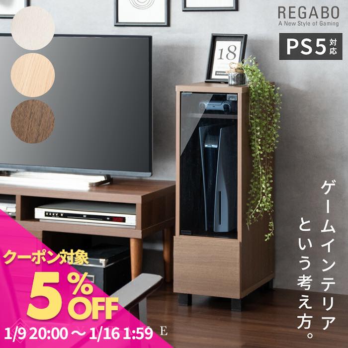 デザイナーズゲームラック REGABO(レガボ)ゲーム機ラック ゲーミングラック リビング収納 プレステ5収納 リビングラック 木製ラック PS5 ゲーム 木目調 ガラス扉 引き出し ゲームソフト コントローラー 収納 NintendoSwitch 任天堂スイッチ収納