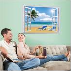 壁が窓に早変わり! 南国 ビーチ 剥がせる ウォールステッカー (ビッグサイズ)