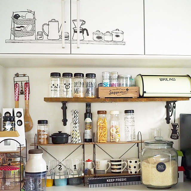 100円のガラスジャーがちょっと大きくて、棚に入らないので、横にして、ボトルシップ風にしてみました。中にはセリアのミニチュア飾りました(*^▽^*)埃避けになるので、GOODでした♪ヽ(´▽`)/楽天のRack Worldでアイリスオーヤマ メタルラックとリバーシブルウッドパーツ棚板2016年10月購入ウッドパーツ棚板で安定して小物が置けます。