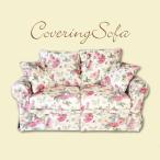 ソファー 2人掛け ソファ 肘付き 薔薇 カバーリング ローズ柄 アンティーク ピンク 赤