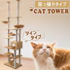 キャットタワー 突っ張り型 スリム 240〜260cm ツインタイプ 爪とぎ 階段付き ハンモック 猫 アスレチック 多頭飼い 賃貸 大型猫 シニア 子猫