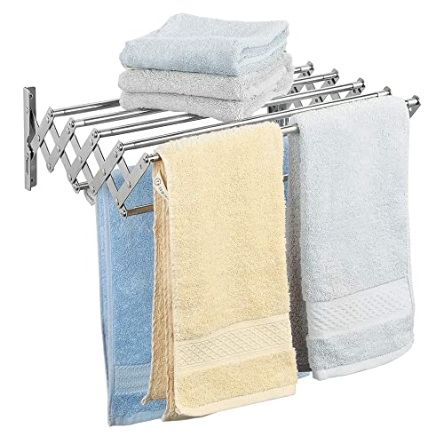 伸縮可能な新型 タオルラック 壁 折りたたみ 壁掛け衣類ハンガー折りたたみウォールコートラック衣類,、タオル、乾燥ラックバルコニー、マウジングルーム、プール、ランドリーのための格納式