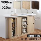 カウンター下収納 キッチンストッカー 薄型 キッチンラック おしゃれ 収納 スリム 食器棚 北欧 隙間収納 扉付き 木製 幅90cm 奥行20cm 引き戸