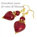 ピアス ハート ベネチアングラスピアス イタリア製ムラーノガラス 24ktゴールドフォイル ドロップピアス ぷっくりハート 赤 ダークレッド 小さい