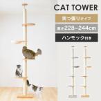キャットタワー 木製 突っ張り ハンモック付き 爪とぎ 猫 タワー 猫タワースリム 省スペース 木登りキャットタワー KCCT-244