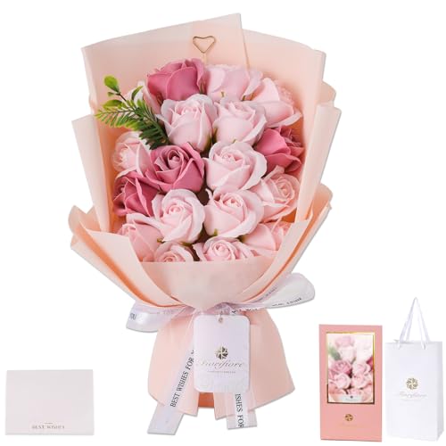 Fiorifiore 人気 ソープフラワー 母の日 花束 プレゼント ギフト 父の日 誕生日 造花 バラ 18本 女性 結婚祝い 退職 送別 インテリア (Pink Lady)