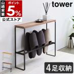 特典付[ 天板付きスリッパラック タワー ] 山崎実業 tower スリッパラック 玄関 収納 スリム おしゃれ 引っ掛け 4足 木製 天板 ホワイト ブラック 5152 5153