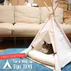 ティピーテント 猫 ネコ 犬 イヌ ペット ベッド ボリュームクッション付 テント 小型犬 猫用 かわいい おしゃれ インスタ映え 簡単組み立て式 ペット用