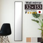 鏡 壁掛け 幅32cm 高さ153cm 木目 白 ミラー 細枠 約30cm 飛散防止加工 天然木 送料無料 ブラウン ナチュラル 姿見鏡 スリム フォースター