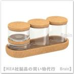 IKEA/イケア SAXBORGA ふた付き容器&トレイ 5点セット ガラス/コルク(203.940.15)