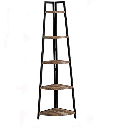 'O&K ファニチャー コーナーシェルフ 5段 コーナーラック ブックシェルフ 多目的 飾り棚 本棚 インテリア ブラックエスプレッソ 幅41.91×奥行41.91×高さ177.55cm
