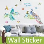 ウォールステッカー 花 草 葉 グリーン 鳥 草花 孔雀 くじゃく 蝶 ちょう カラフル 英字 英語 (ピーコック) 貼ってはがせる 北欧 インテリアシール 宅C