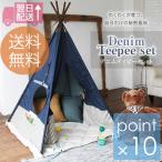 デニムティピー セット 子供の秘密基地のような可愛らしい小さなおうち キッズテント 工具不要簡単組立
