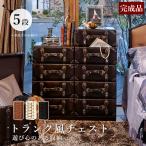 トランク風チェスト 5段 収納 おしゃれ 合皮 ヴィンテージ 完成品