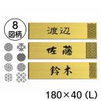 表札 風水 開運 縁起の良い吉祥文様入り ネームプレート 真鍮風 ゴールド 180×40 L おしゃれ ポスト 横長 金 屋外対応 簡単取付 シール式 メール便送料無料