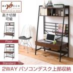 2WAY パソコンデスク 上部収納 幅 90cm 高さ調節 机 デスク 学習机 勉強机 ワークデスク 書斎 木製