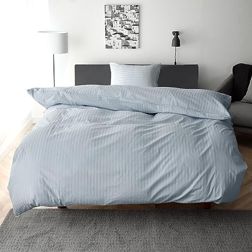 Sleep Tailor 日本製 布団カバー セット シングル 3点セット 防ダニ 綿100% サテンストライプ 高密度生地315本 掛け布団カバー ボックスシーツ 枕カバー 北欧 おしゃれ エトワール (シングル, シェルブルー)[ST]