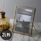 フォトフレーム 2L  縦 ガラス 真鍮 ケース アクセサリー 収納 写真 たて 入れ フォト メニュー スタンド ディスプレイ アンティーク 風 おしゃれ 67051