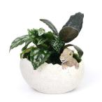 (観葉植物)おまかせミニ観葉2種 エッグポット ティラノサウルス ワイド(1鉢)苔