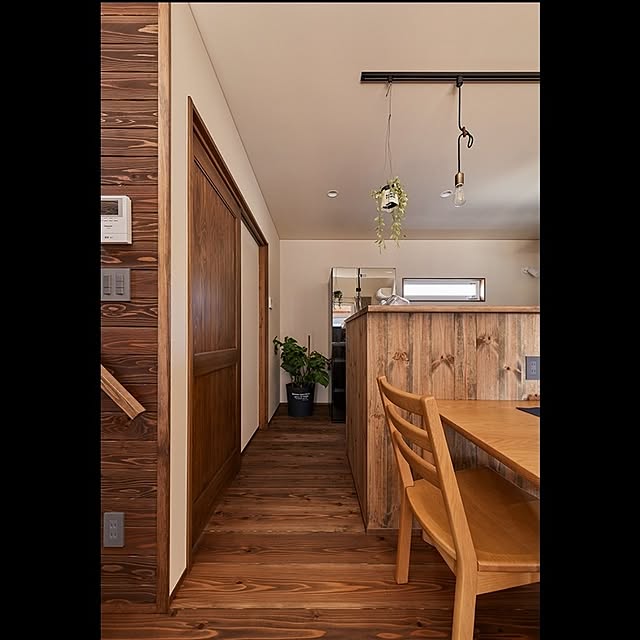 #リビング, #無垢材, #観葉植物, #無垢の床, #漆喰壁, #対面キッチン