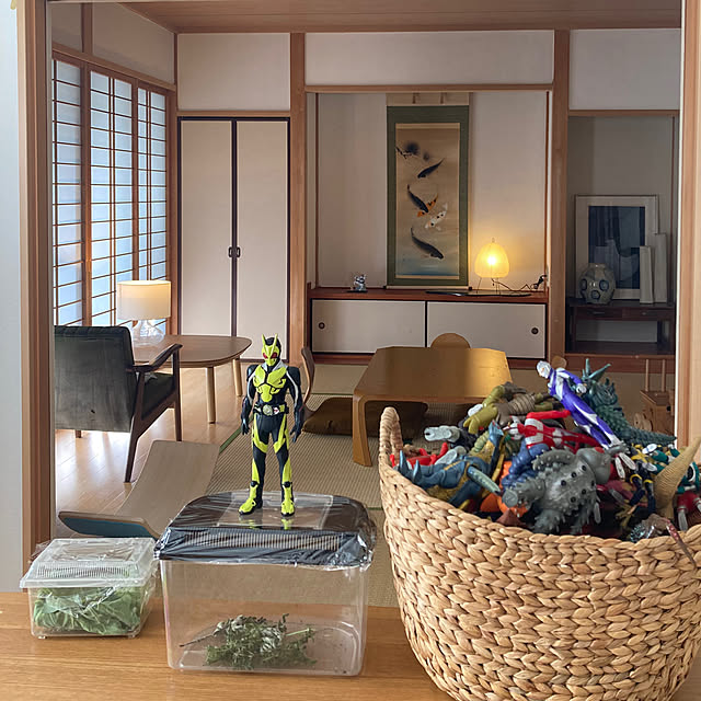 我が家は洋室続きの和室があります一枚目…和室の雰囲気を楽しみたい私の理想の空間二枚目…実際は、、虫やウルトラマンをばら撒く息子のおもちゃだらけ😅先週、帰省しました🐸田んぼに囲まれた実家夜中はカエルの大合唱息子は初めてのカエルの声に大興奮!夜中にカエルを取りに行く🥺✨と言って寝ないので街灯のない真っ暗な中カエルの幻想的な合唱を聴いてきました☺️翌朝は6時に起きてきてカエル取りにいく!と…一匹捕まえてあげたら大喜びでしたてんとう虫🐞モンシロチョウの幼虫バッタ実家から連れて帰りましたよ🤗💦私は実家にたくさん眠っていた掛け軸の中から鯉の柄のものを連れて帰りました