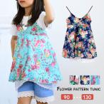 キャミソールチュニック ワンピ スチュニック 子供用 Aライン フレアスカート レース 革ひも 春 夏 吊りワンピース 花柄 フラワー おしゃれ 可愛