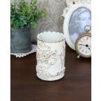 お洒落なロココスタイルのペンホルダー(ペン立て/ホワイト) アンティーク調 ペン立て 小物入れ 丸型 輸入雑貨 インテリア 薔薇 ローズ ゴールド 卓上 飾り