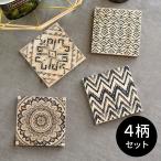 コースター 4柄セット ウッド調 正方形 アジアン エスニック 四角 トレー テーブルコーディネート おしゃれ キッチン用品 66586