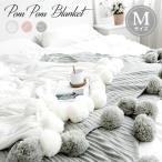 セール ひざ掛け ポンポン 付き ブランケット 毛布 大判 寝具 ニット タオルケット スローケット レディース