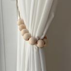 リビングイン階段のカーテンにウッドビーズタッセルを。カーテンの色味に合ってます♪