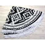 (1■3B)LOFT フリンジつき ラウンド ビーチ タオル 紺 直径165cm ブラック/〓EEX