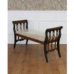 座面が大きくてしっかり座れるアンティーク風ベンチ 長椅子 輸入家具 クラシック 布張り お洒落 シャビー インテリア 海外 リビング 木製