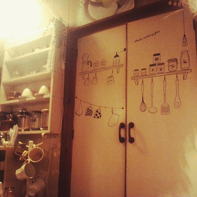 3coinsのウォールステッカー真っ白な壁に少しアレンジが気に入ってます☆