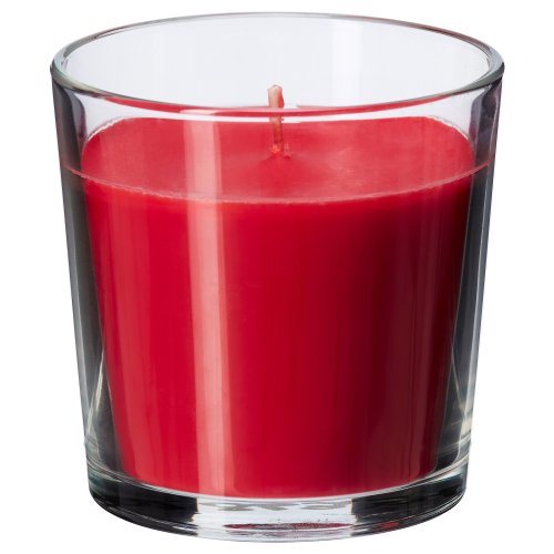 IKEA SINNLIG 60237702 香り付きキャンドル グラス入り 7.5 cm スイートベリー レッド
